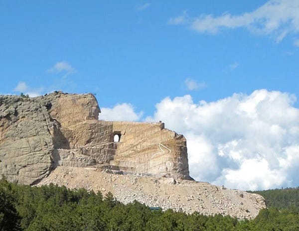 The Crazy Horse Memorial in the Black Hills is located on privately held land, and has been in progress since 1948 and is far from completed. If finished, it could become the largest sculpture in the world. It is amazing — and the web site(s) are definitely click worthy — take a look.