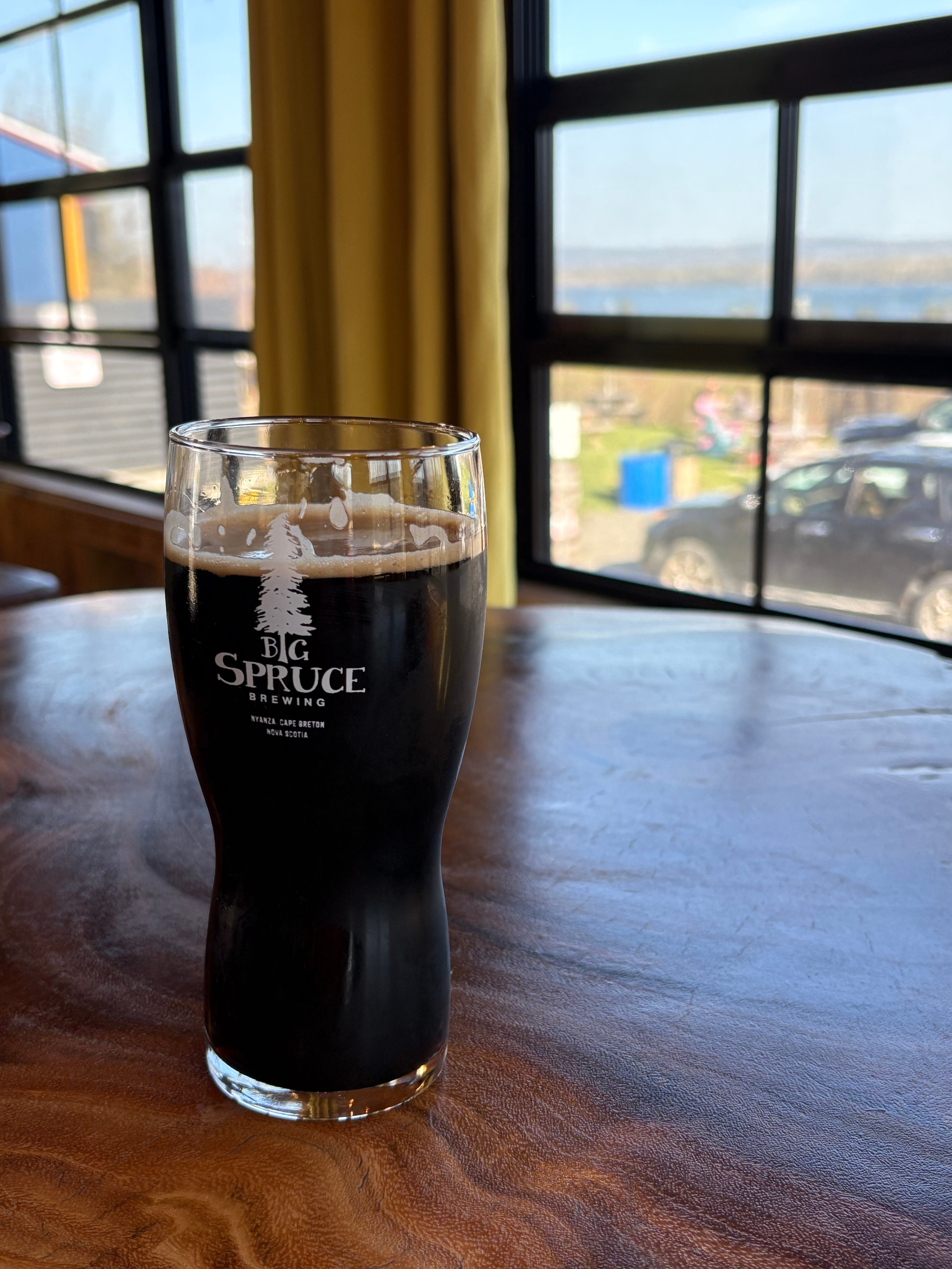 Just up the Trans-Canada Highway, toward Baddeck, in the village of Nyanza, we found Big Spruce Brewing— “…certified organic…unfiltered, unpasteurized, unbelievably good beer…” and we are in unqualified agreement with that claim. We had a couple of growlers of the “Cereal Killer” Oatmeal Stout (not in one sitting), the best beer we found north of Asheville, North Carolina, and that includes the breweries on the Bonavista Peninsula and at St. John’s in Newfoundland—and in Portland and at Bar Harbor in Maine.
