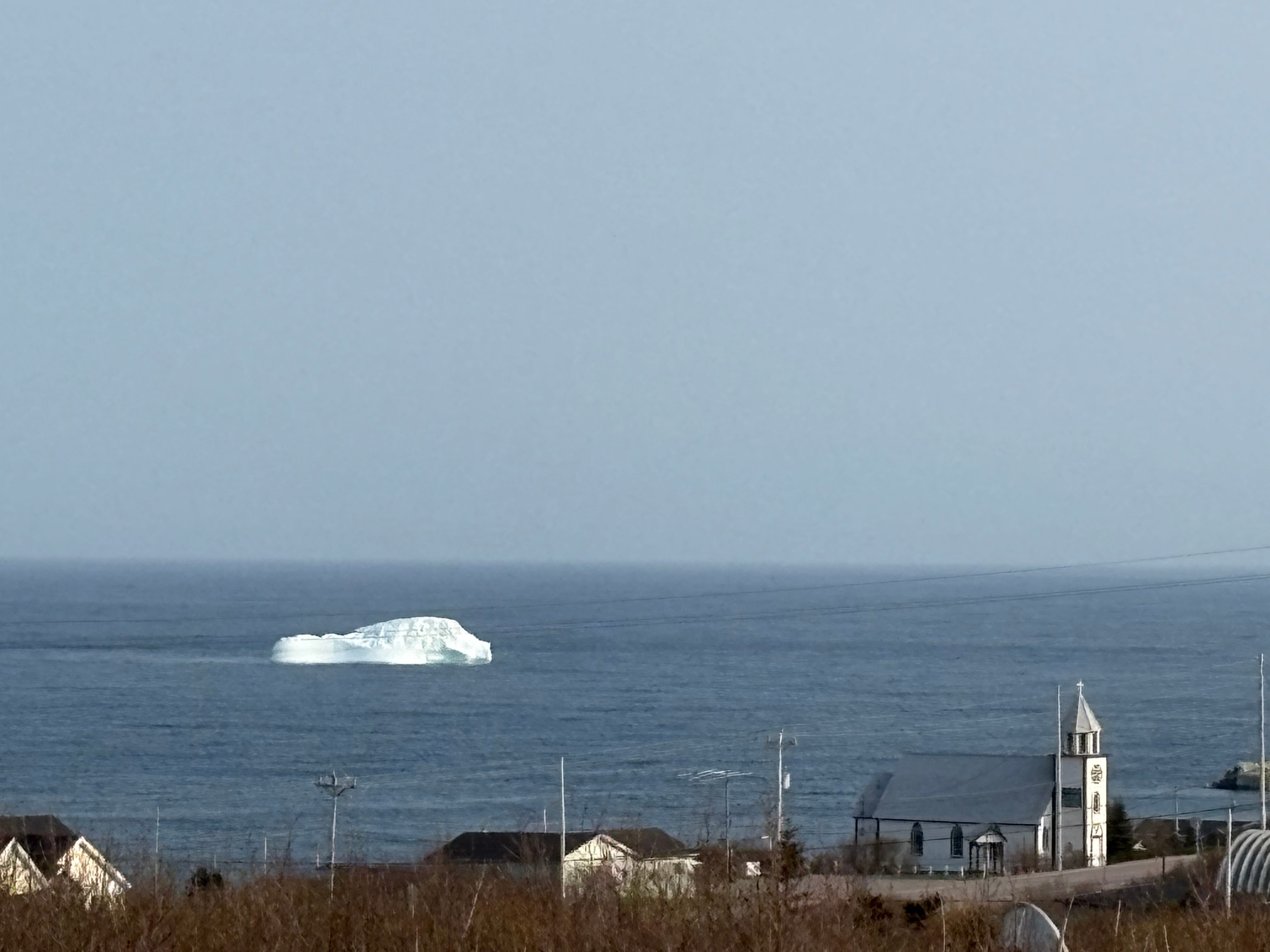 As our ferry from Newfoundland to Labrador approached the landing, the iceberg above was there to greet us at the end of the voyage. I camped a few miles east of the landing at Lanse au Claire, and the view from my campsite is captured in the photo below.