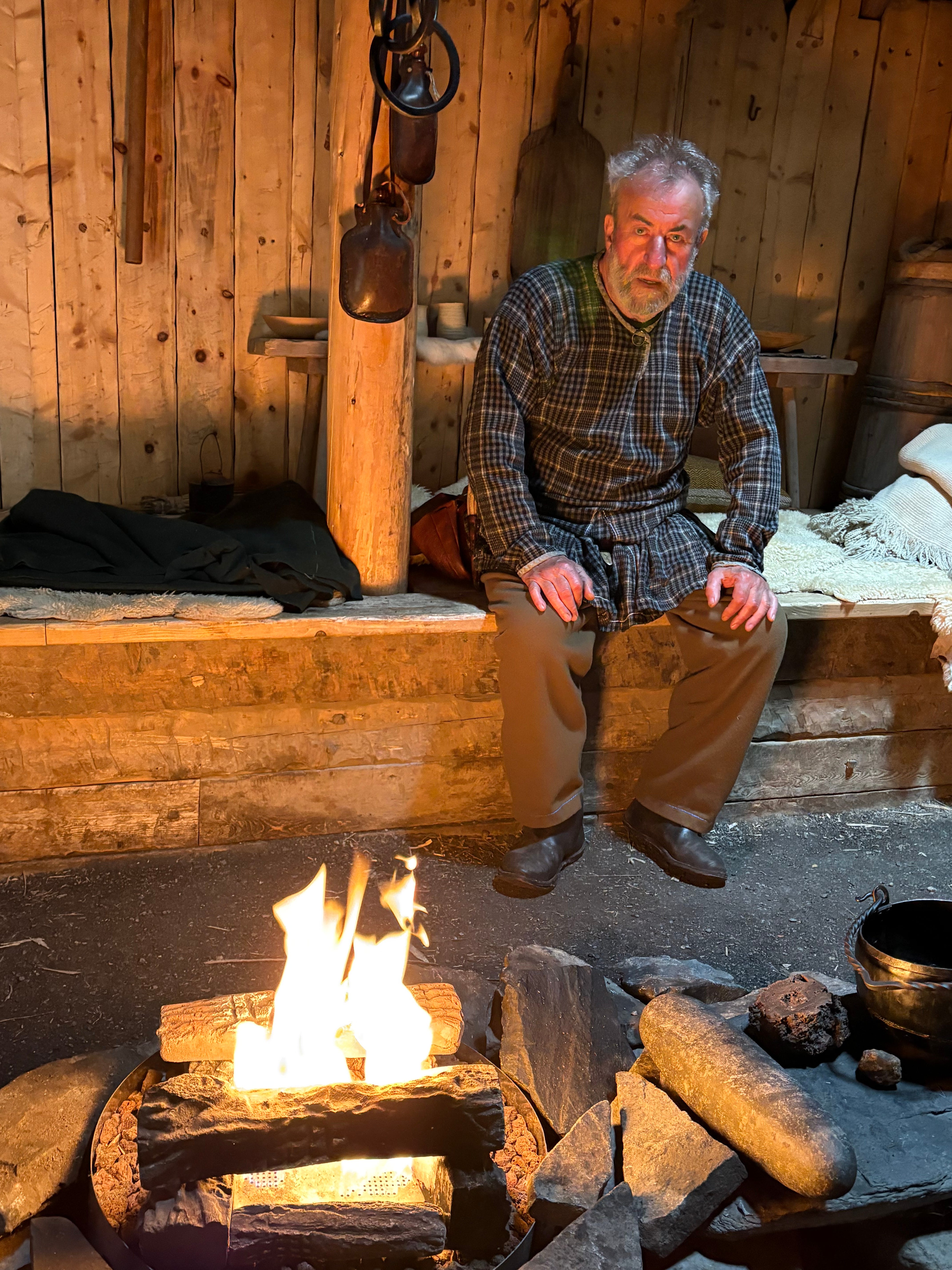 Agil the Norseman in his longhouse at L’Anse aux Meadows, as interpreted by Wade Hillier - Photo by Tom T Traywick