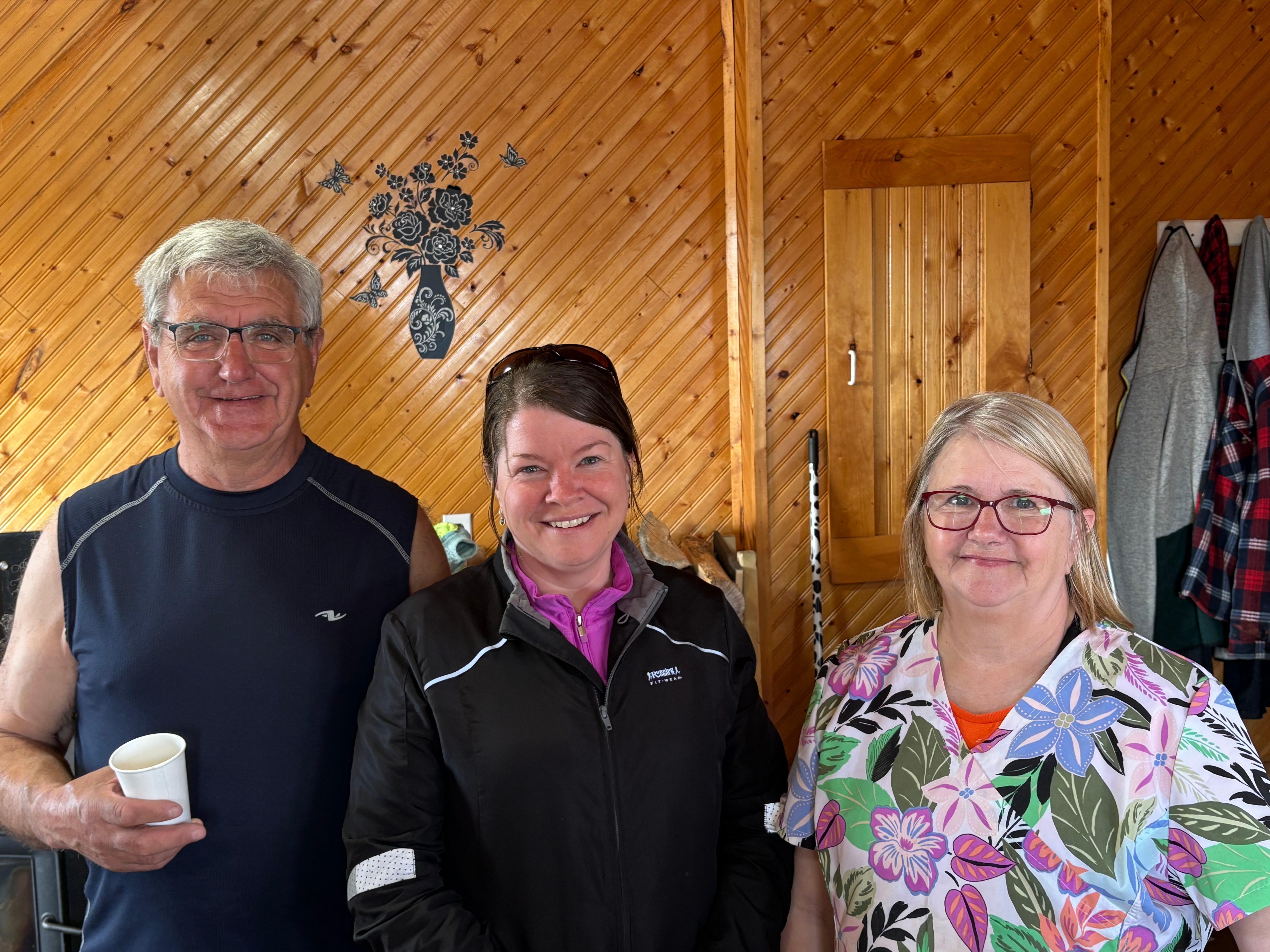 Alec, Jaime (Anora), and Grace Roberts in the office at Viking RV Park.
