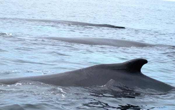 These girls are over 40 feet and 40 tons. We saw one with a calf which was only about 12 feet long but very playful. They are very sociable creatures.