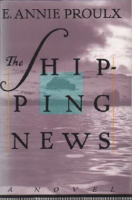 I had been looking around for a novel by Proulx after reading her short story in The New Yorker Summer Fiction Issue. At the public library I decided against her several volumes of Wyoming stories and chose The Shipping News because I was aware that it was an earlier award winning work. The book jacket announces it the winner of the U. S. National Book Award. That edition was apparently printed before it won the Pulitzer Prize for Fiction. The book is worthy. I am in awe.
